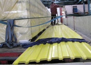 Сложность перевозки профнастила зависит от его размеров и веса. Эти профилированные оцинкованные листы металла при ширине примерно 1 м могут быть различной длины, ограниченной возможностями оборудования, но не более 14 м. Производитель упаковывает их в пачки, при наличии полимерного покрытия оборачивает пленкой. Чтобы сохранить жесткость, пачка укладывается на деревянные брусья и крепится упаковочной лентой. Эти предосторожности позволяют сохранить качество покрытия, что при достаточно высокой цене логично. Любая царапина или скол снижают эстетические свойства и уменьшают срок службы.